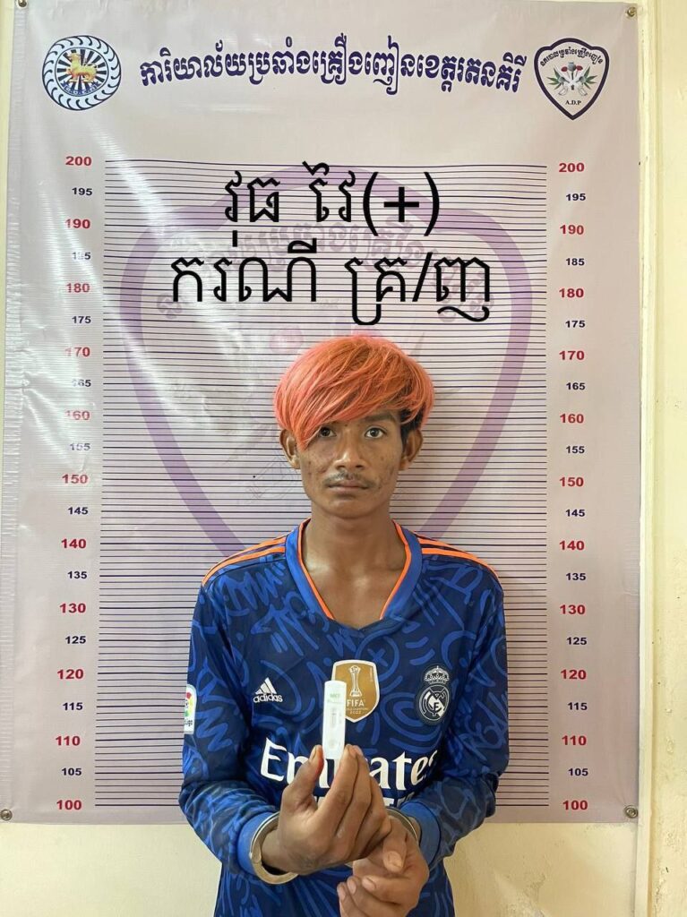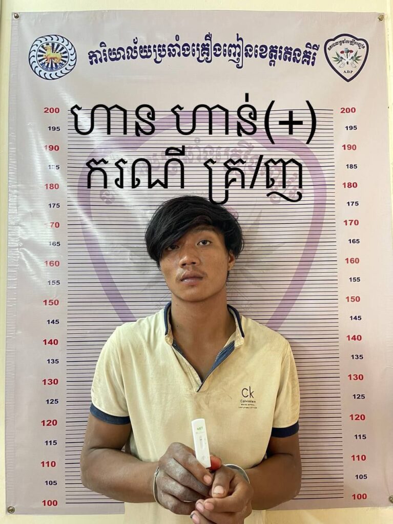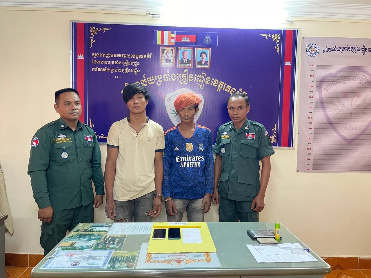 រតនគិរី៖កម្លាំងអធិការដ្ឋាននគរបាលស្រុកកូនមុំ នៅនៅវេលាម៉ោង២៣និង៣០នាទីថ្ងៃទី២៨ ខែមេសា ឆ្នាំ២០២២ បានចុះល្បាតនៅចំណុចភូមិ០៣ ឃុំត្រពាំងក្រហម បានជួបមុខសញ្ញាគួរឱ្យសង្ស័យ បានឃាត់សាកសួរ និងធ្វើការឆែកឆេរ បានរកឃើញម្សៅក្រាមសង្ស័យជាសារធាតុញៀនចំនួន១០ថង់តូច។