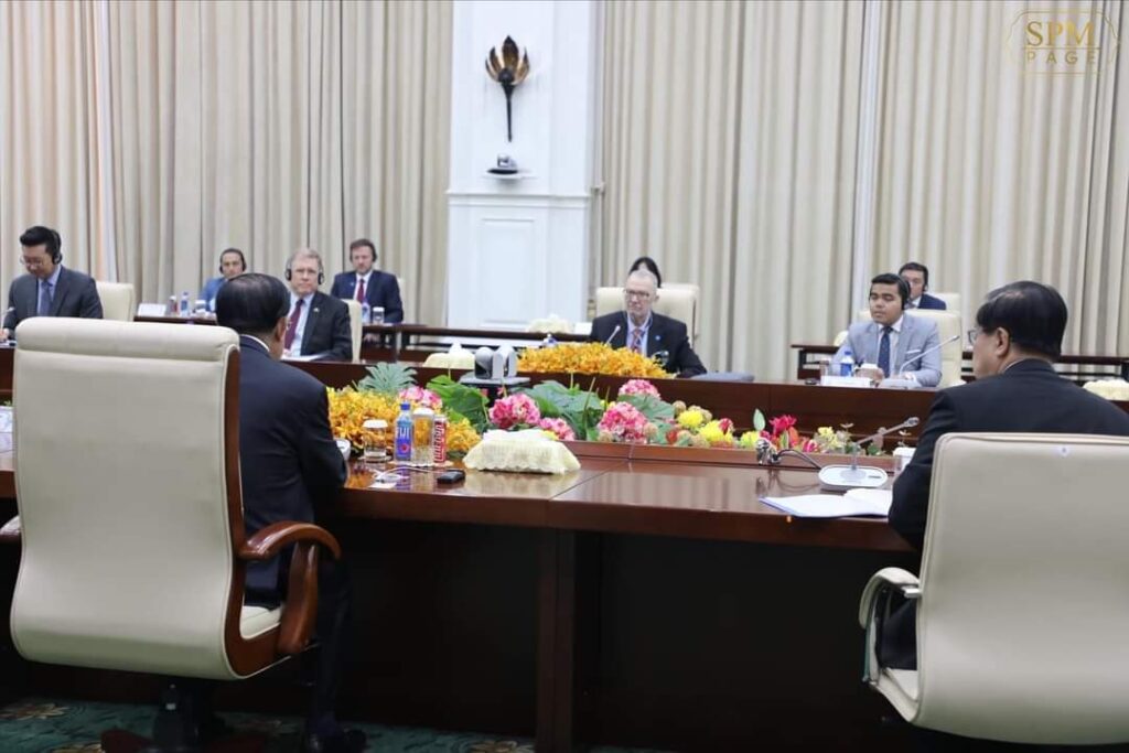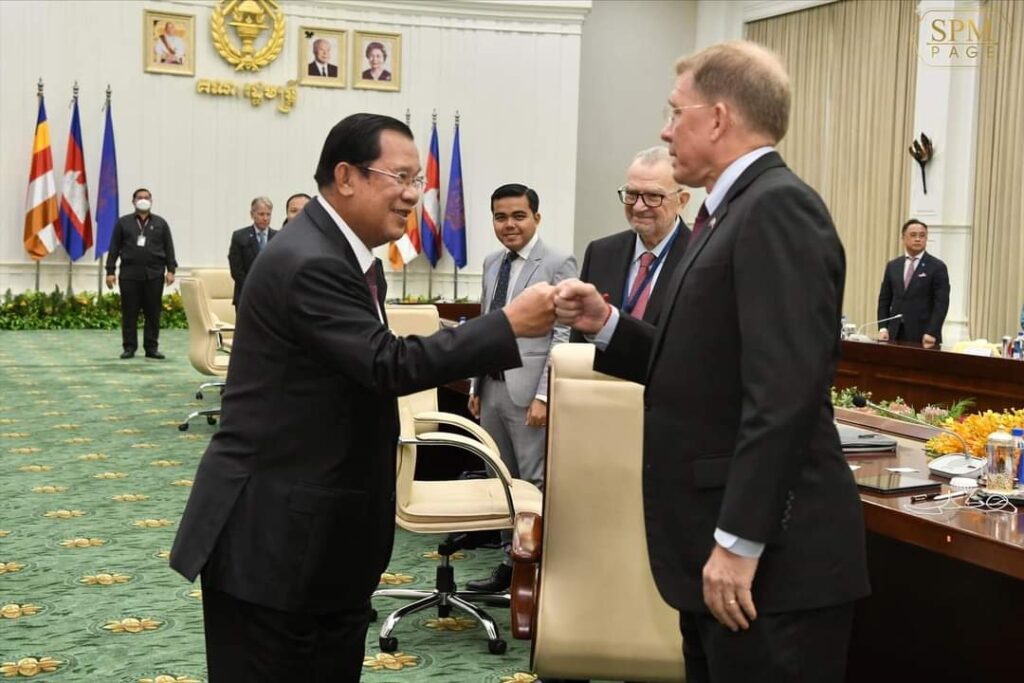 ភ្នំពេញ៖នៅព្រឹកថ្ងៃទី៥ ខែឧសភា ឆ្នាំ២០២២ សម្ដេចអគ្គមហាសេនាបតីតេជោ ហ៊ុន សែន នាយករដ្ឋមន្ត្រីនៃព្រះរាជាណាចក្រកម្ពុជា បានទទួលជួបពិភាក្សាការងារជាមួយក្រុមប្រឹក្សាធុរកិច្ចសហរដ្ឋអាមេរិក-អាស៊ាន ដឹកនាំដោយឯកឧត្តម ឯកអគ្គរដ្ឋទូត ឯកឧត្តម ម៉ៃខើល មីចាឡាក់ (Michael Michalak) អនុប្រធានជាន់ខ្ពស់នៃនាយកគ្រប់គ្រងប្រចាំតំបន់ នៃក្រុមប្រឹក្សាធុរកិច្ចអាមេរិក-អាស៊ាន។