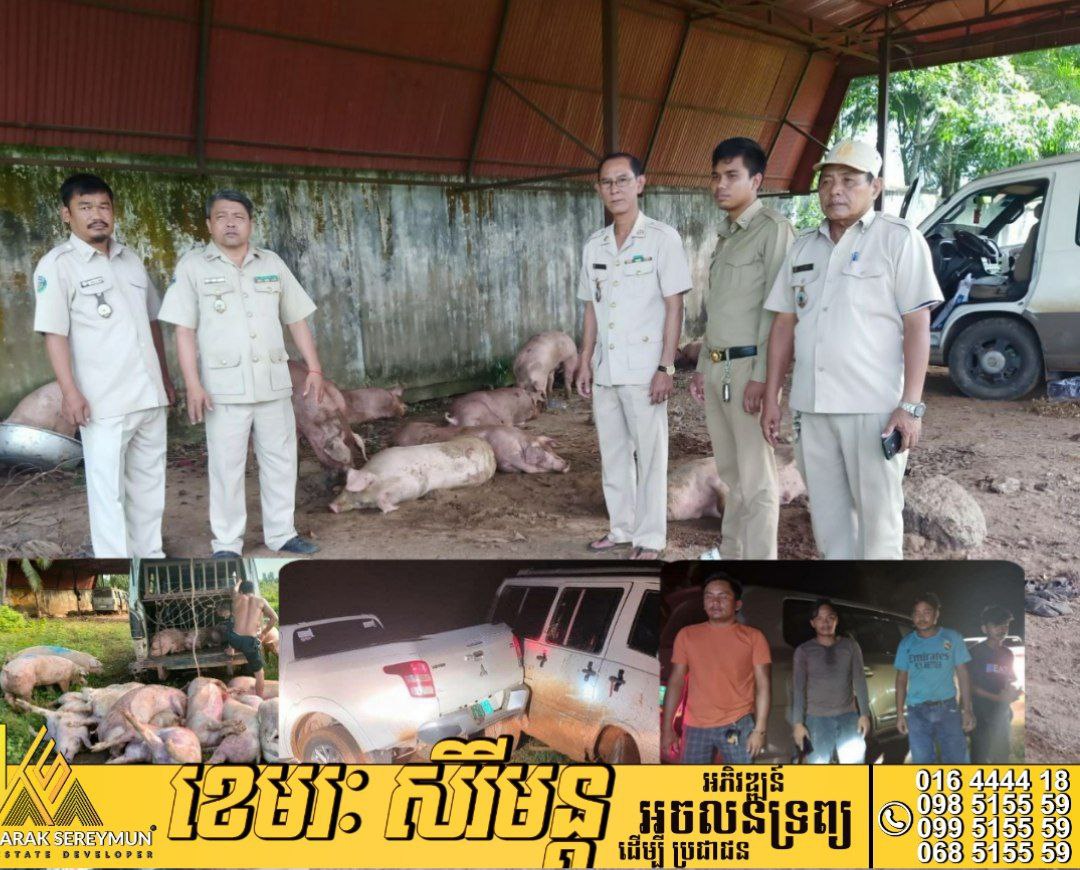 ខេត្តត្បូងឃ្មុំ៖សេចក្តីរាយការណ៍បានឲ្យដឹងថា នៅម៉ោង១២ និង៣០នាទីយប់ ថ្ងៃទី២៩ ខែឧសភា ឆ្នាំ២០២២ ក្រុមការងារអន្ដរាគមន៍បង្រ្កាបបទល្មើសចលនាសត្វ នៃអគ្គនាយកដ្ឋានសុខភាពសត្វ និងផលិតកម្មសត្វ ជាមួយការិយាល័យផលិតកម្ម និងបសុព្យាបាលខេត្ត ដោយមានការសម្របសម្រួលពីឯកឧត្តមព្រះរាជអាជ្ញា នៃអយ្យការអមសាលាដំបូងខេត្តត្បូងឃ្មុំ បានធ្វើការស្ទាក់ចាប់បានរថយន្ដ ០១គ្រឿងម៉ាកសាំយ៉ុង ពណ៌ស ជាប្រភេទរថយន្ដដឹកអ្នកដំណើរ ១៥កៅអី គ្មានស្លាកលេខ បានលួចដឹកជញ្ជូនជ្រូករស់ដោយខុសច្បាប់ ៣២ក្បាលនាំចូលពីប្រទេសវៀតណាម ឆ្លងកាត់តាមច្រករបៀងក្នុងស្រុកពញាក្រែក ខេត្តត្បូងឃ្មុំ បម្រុងយកទៅចែកចាយនៅក្នុងក្រុងសួង ដោយគ្មានលិខិតអនុញ្ញាតអ្វីទាំងអស់ ។