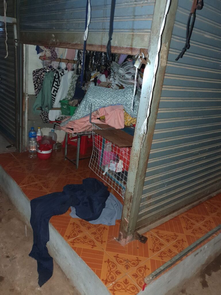 ដល់ថ្ងៃទី០២ ខែ មិថុនា ឆ្នាំ២០២២ វេលាម៉ោង ០៦.៣០ នាទីព្រឹក ខ្លួនមិនទាន់បានមកដល់តូបលក់ទេ ស្រាប់តែមានអ្នកលក់ជិតៗនោះបានទូរស័ព្ទទៅប្រាប់ម្តាយក្មេកខ្លួនថា មានជនមិនស្គាល់អត្តសញ្ញាណ ចូលគាស់តូបខ្លួនយកខោអាវក្នុងតូបអស់ខ្លះ។ពេលខ្លួនឮដូច្នោះក៏ប្រញ៉ាប់មកមើលតូបក៏ស្រាប់តែឃើញតូបខ្លួនរបើកទ្វារ និងបាត់សោចំនួន ១គ្រាប់និង១គ្រាប់ទៀតគាស់បែកមាត់ ជាប់និងត្រចៀកទ្វារ ហើយខ្លួនក៏ស្ទុះចូលទៅមើលខាងក្នុងតូបក៏ឃើញបាត់ខោអាវអស់ច្រើន ដោយមិនដឹងថាចោរគាស់លួចពីពេលណានោះទេ ។ ដឹងហេតុការណ៍ភ្លាម ខ្លួនក៏មកដាក់ពាក្យបណ្តឹងនៅអធិការដ្ឋាននគរបាលស្រុកសូទ្រនិគមតែម្ដង។សមត្ថកិច្ចបន្ថែមថា តាមការប៉ាន់ស្មានឥវ៉ាន់ដែលបាត់បង់មានតម្លៃប្រហាក់ប្រហែលជិត ២០០០ដុល្លារ។