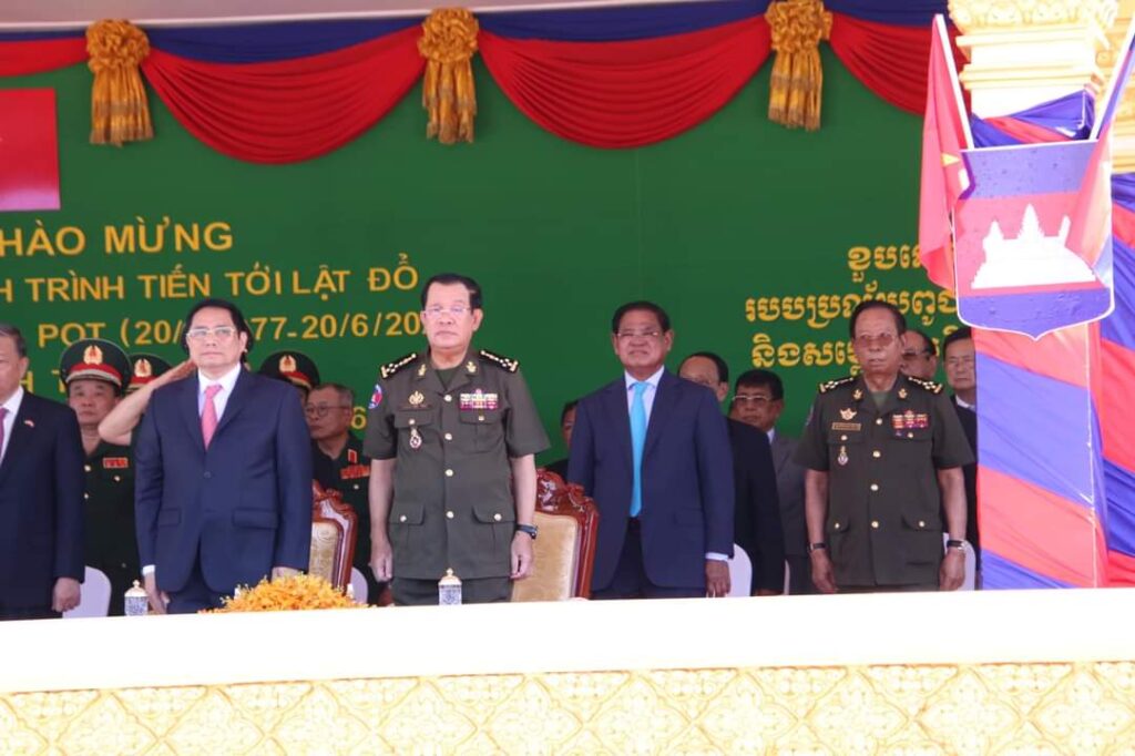 បន្ទាប់មកសម្ដេចតេជោ និងឯកឧត្តមនាយករដ្ឋមន្ត្រីវៀតណាមនក៏បានអញ្ជើញធ្វើដំណើរមកប្រារព្ធពិធីអបអរសាទរខួប៤៥ឆ្នាំនៃ ទិវាចងចាំដំណើរឆ្ពោះទៅរកការរំដោះជាតិពីរបបប្រល័យពូជសាសន៍ ប៉ុល ពត និងសម្ពោធសមិទ្ធផលផ្សេងៗជាច្រើនទៀត៕ដោយ៖AFN