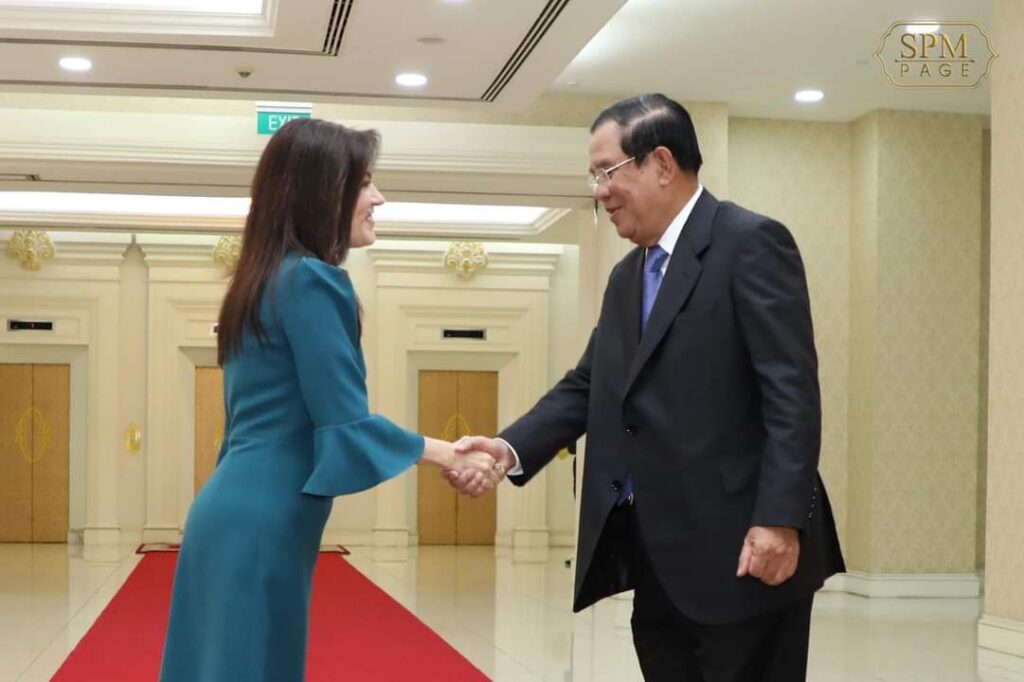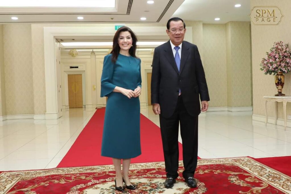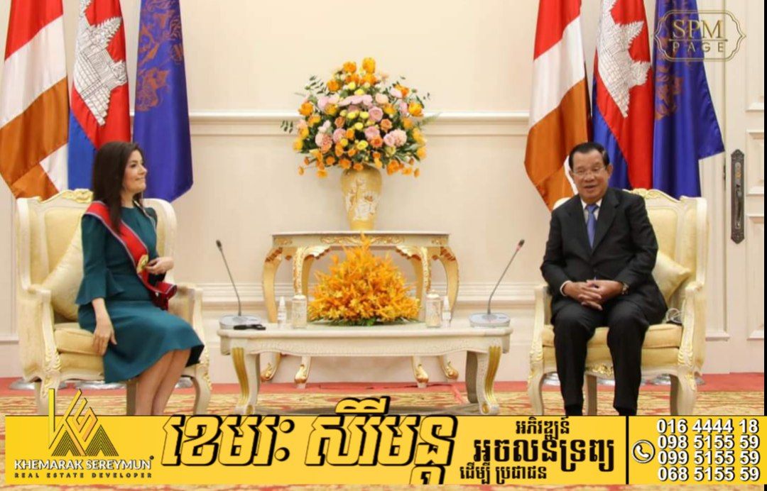 ភ្នំពេញ៖នៅវិមានសន្តិភាព នាព្រឹកថ្ងៃទី២៣ ខែមិថុនា ឆ្នាំ២០២២ នេះ សម្ដេចអគ្គមហាសេនាបតីតេជោ ហ៊ុន សែន នាយករដ្ឋមន្ត្រី នៃព្រះរាជាណាចក្រកម្ពុជា បានទទួលជួបពិភាក្សាការងារជាមួយនឹងលោកជំទាវ អាយដា អ៊ុនលូ (Ayda Unlu) ឯកអគ្គរដ្ឋទូតតួគី ប្រចាំនៅកម្ពុជា ខណៈដែលលោកជំទាវ បានចប់បេសកកម្មការទូតនៅព្រះរាជាណាចក្រកម្ពុជា។