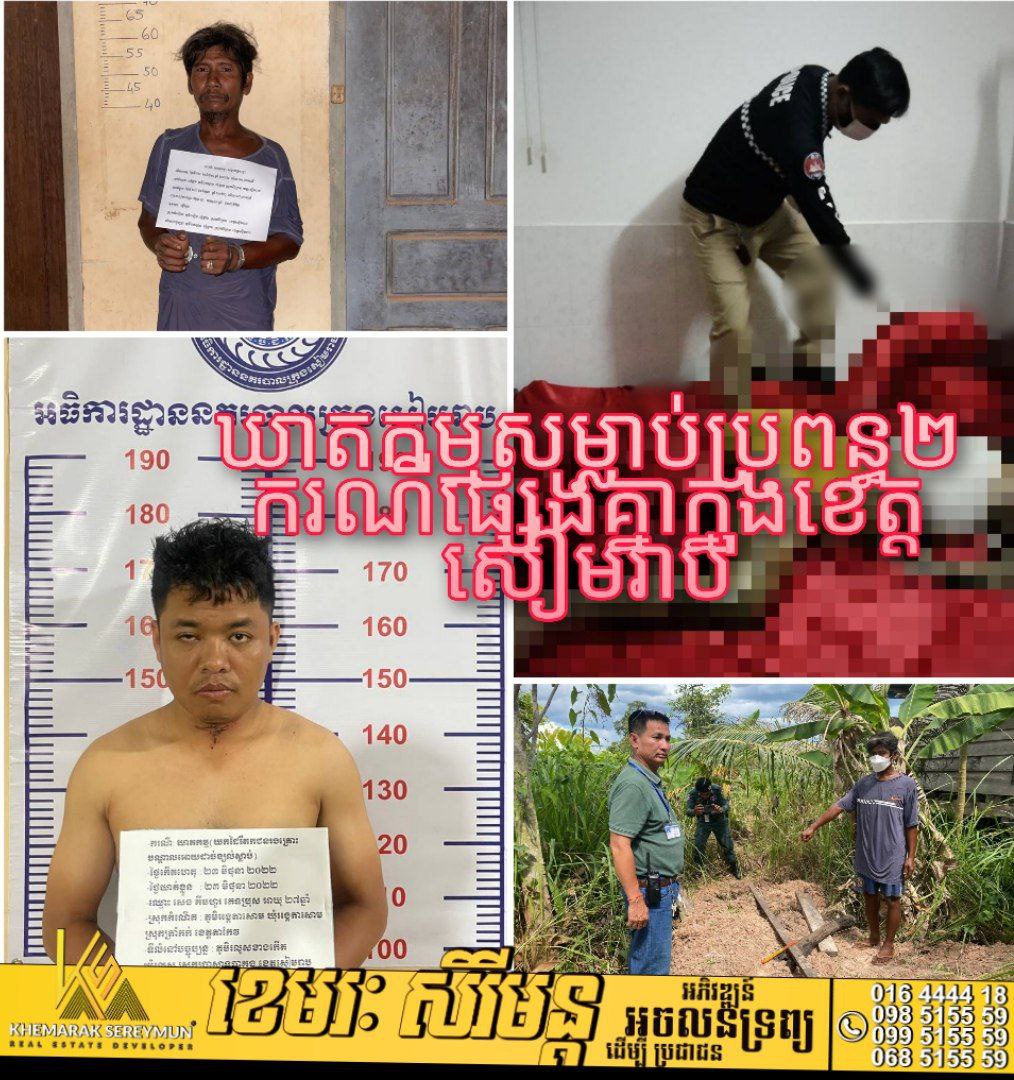 ប្រភពបន្តថា នៅថ្ងៃទី២៣ ខែមិថុនា ឆ្នាំ២០២២ វេលាម៉ោង ១៨.២៤នាទី ទទួលសេចក្តីរាយការណ៍ពីប្រជាពលរដ្ឋថា មានធុំក្លិនស្អុយ នៅបន្ទប់ជួលក្នុងភូមិបន្ទាយចាស់ សង្កាត់ ស្លក្រាម ក្រុងសៀមរាប។សមត្ថកិច្ចចុះទៅដល់កន្លែងកើតហេតុ ក៏ឃើញជនសង្ស័យដេកក្បែរសាកសព ជនរងគ្រោះ ឈ្មោះផា រដ្ឋា ភេទស្រី អាយុ២៤ឆ្នាំក្នុងនៅបន្ទប់កើតហេតុ ខាងលើដោយ ចាក់សោបិទទ្វាជិតតែចំហរបង្អួច។ភ្លាមៗនោះសមត្ថកិច្ចបានសហការជាមួយម្ចាស់ផ្ទះគាស់ទ្វារបន្ទប់ហើយឃាត់ខ្លួនជនសង្ស័យខាងលើយកមកសួរនាំ។ នៅចំពោះមុខសមត្ថកិច្ចជនសង្ស័យខាងលើបានឆ្លើយសារភាពថា ខ្លួន ប្រច័ណ្ឌ និងជនរងគ្រោះ មានប្រុសថ្មី។សមត្ថកិច្ចបន្តថា ករណីទី២ កម្លាំងនគរបាលជំនាញខេត្តនិងនគរបាលស្រុកជីក្រែង បានស្រាវជ្រាវឃាត់ខ្លួនជនសង្ស័យម្នាក់ ឈ្មោះស៊ុយ ជួរ ភេទប្រុស អាយុ៤៣ឆ្នាំ មុខរបរធ្វើស្រែទីលំនៅសព្វថ្ងៃ ភូមិចុងស្ពាន ឃុំខ្វាវ ស្រុកជីក្រែង ពាក់ព័ន្ធករណីឃាតកម្ម(សម្លាប់ប្រពន្ធឈ្មោះសែត ណាន អាយុ៣៧ឆ្នាំ)កើតហេតុថ្ងៃទី២២ខែមិថុនាឆ្នាំ២០២២។