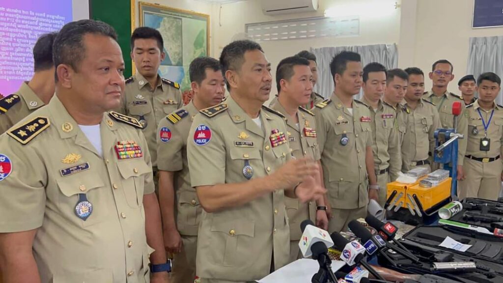 ខេត្តព្រះសីហនុ៖សេចក្តីរាយការណ៍បានអោយដឹងថា នគរបាលខេត្តព្រះសីហនុ នៅព្រឹកថ្ងៃទី២៥មិថុនា២០២២នេះ បានធ្វើសន្និសីទកាសែត បង្ហាញពីលទ្ធផលដែលនគរបាលបង្ក្រាបបានក្រុមជនសង្ស័យ ប្រើប្រាស់និងជួញដូរអាវុធខុសច្បាប់ បន្ទាប់ពីព្រឹត្តិការណ៍ផ្ទុះអាវុធពីសំណាក់ក្រុមជនល្មើសនៅក្រុងព្រះសីហនុ បណ្តាលឲ្យអធិការរងនគរបាលក្រុងព្រះសីហនុមួយរូបរងរបួសបាក់ជើងម្ខាងធ្ងន់ធ្ងរ កាលពីយប់ថ្ងៃទី១៥មិថុនា២០២២។