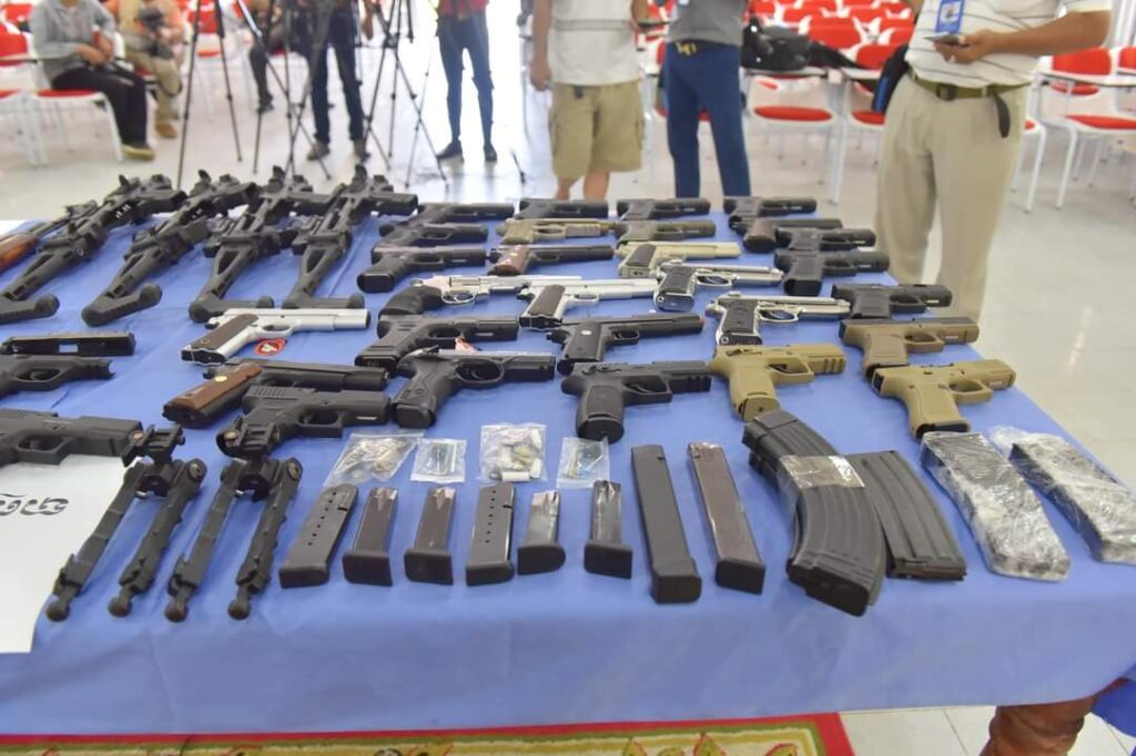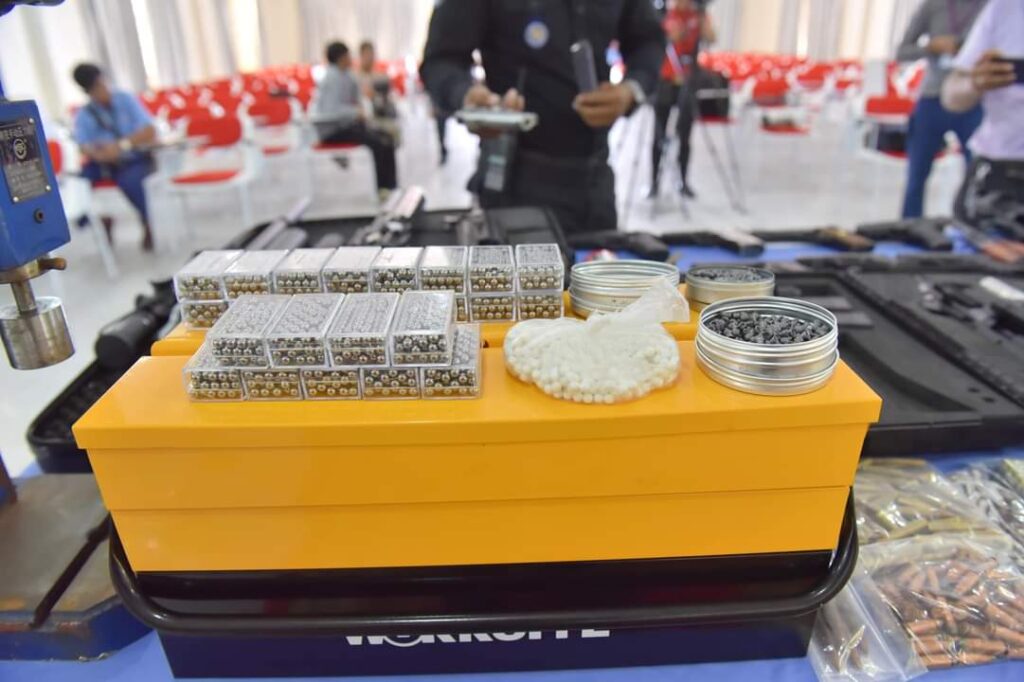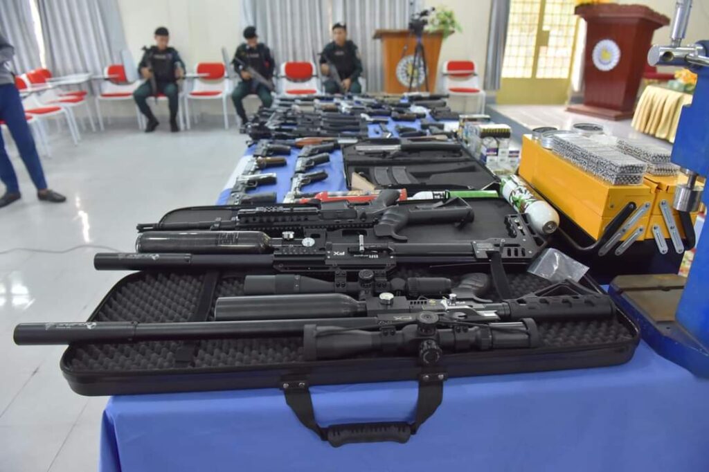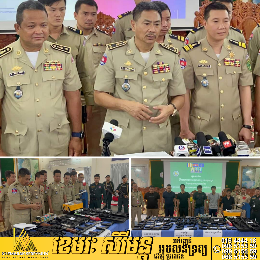 ចំពោះវត្ថុតាងដែលសមត្ថកិច្ចដកហូតបាន មានអាវុធបាញ់គ្រាប់ពិតចំនួន១១ដើម រួមនិងអាវុធកែឆ្នៃច្រើនដើមទៀត។