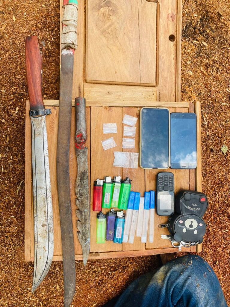 ៥-ឈ្មោះ ប្រាក់ តឹប ភេទប្រុស អាយុ៥៩ឆ្នាំ ជនជាតិខ្មែរ សញ្ជាតិខ្មែរ មុខរបរកម្មករ រស់នៅភូមិក្រចាប់លេី សង្កាត់អូរតាវ៉ៅ ក្រុងប៉ៃលិន ខេត្តប៉ៃលិន មានផ្ទុកសារធាតុញៀន (+)។ ចំពោះវត្ថុតាងដកហូតសរុបរួមមាន៖