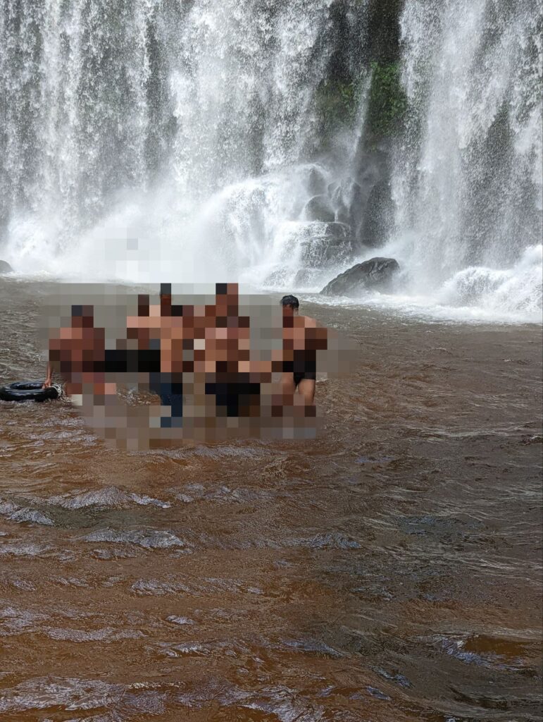 លុះពេលមកដល់ចំណុចទឹកធ្លាក់ ពួកគេទាំងបីនាក់ បានលេងទឹកជាមួយគ្នា បន្ទាប់ពីលេងបាន១៥នាទី ជនរងគ្រោះ ក៏បានជួយមិត្តភិក្ដស្រី មកទុកនៅមាត់ច្រាំងម្ខាង ហើយខ្លួនក៏បានបបួលអ្នកបើក Pass App ហែលឆ្លងទៅច្រាំងម្ខាងទៀត ពេលហែលទៅដល់ចំណុចផ្ទាំងថ្ម ដែលមានទឹកជ្រៅជនរងគ្រោះ មានសភាពអស់កម្លាំង ហើយក៏តោងផ្ទាំងថ្មដែរ តែដោយសារផ្ទាំងថ្ម មានសភាពស្លែកាន់រអិល ធ្វើឲ្យ ជនរងគ្រោះ តោងមិនជាប់ក៏លេចទៅក្នុងទឹក។ ចំណែកអ្នកបើក Pass App បានខំព្យាយាមស្រវ៉ាជួយចាប់ដៃជនរងគ្រោះ ដែរ តែចាប់មិនទាន់ ដោយសារខ្លួនស្ថិតនៅក្នុងសភាពអស់កម្លាំងដែរ ហើយក៏បានស្រែកឲ្យភ្ញៀវទេសចរណ៍ ដ៏ទៃទៀត ជួយរាវរកជនរងគ្រោះ តែរកពុំឃើញ ។