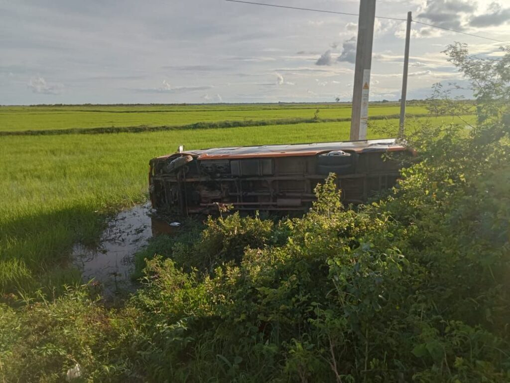 សៀមរាប៖សមត្ថកិច្ចបានឲ្យដឹងថា រថយន្តក្រុងក្រុមហ៊ុនវិរៈប៊ុនថាំ ដឹកភ្ញៀវទេសចរណ៍បរទេស បោះពួយលឿនមិនប្រកាន់ស្តាំទៅបុកគោយន្តកន្ត្រៃបណ្តាលឲ្យស្លាប់មនុស្សចំនួន៣នាក់និងរបួសធ្ងន់ចំនួន៥នាក់។ចំណែកអ្នកបើកបររថយន្តរត់គេចខ្លួនបាត់។ ហេតុការណ៍នេះកើតឡើងវេលាម៉ោង ១៧និង០០នាទីនៅថ្ងៃទី ០២ ខែសីហា ឆ្នាំ២០២២ស្ថិតនៅតាមបណ្តោយផ្លូវជាតិលេខ៦ ភូមិគោកត្រុំ ឃុំស្រណាល ស្រុកក្រឡាញ់ ខេត្តសៀមរាប។
