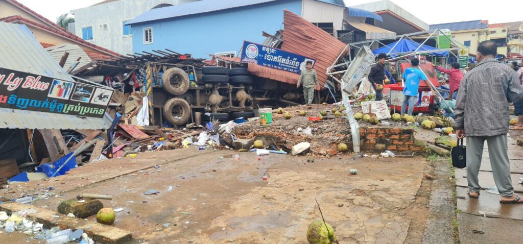 សមត្ថកិច្ចបន្តថា គ្រោះថ្នាក់ចរាចរណ៍នេះកើតឡើង ដោយរថយន្តវេអងសណ្តោង ពាក់ស្លាកលេខ ភ្នំពេញ 3E-4191 ដឹកហ្គាសល្បឿនលឿនចំណុចផ្លូវកោង ហើយបុកតូបបណ្តាលឲ្យក្រឡាប់ ។សមត្ថកិច្ចនៅមិនទាន់អាចស្ទូចរថយន្តគ្រោះថ្នាក់នោះទេ ដោយសារស្ថានភាពនៃគ្រោះថ្នាក់នោះ អាចឈានដល់ហានិភ័យខ្ពស់ ព្រោះស៊ីទែនមានផ្ទុកហ្គាសពេញ ដូច្នេះត្រូវរង់ក្រុមហ៊ុន និងអ្នកជំនាញ និងរថយន្តស្ទួចខ្នាតធំមកពីភ្នំពេញ ដើម្បីលើករថយន្តនោះចេញ និងបន្តពិនិត្យពីផលប៉ះពាល់ និងទ្រព្យសម្បត្តិរបស់ជនរងគ្រោះ។