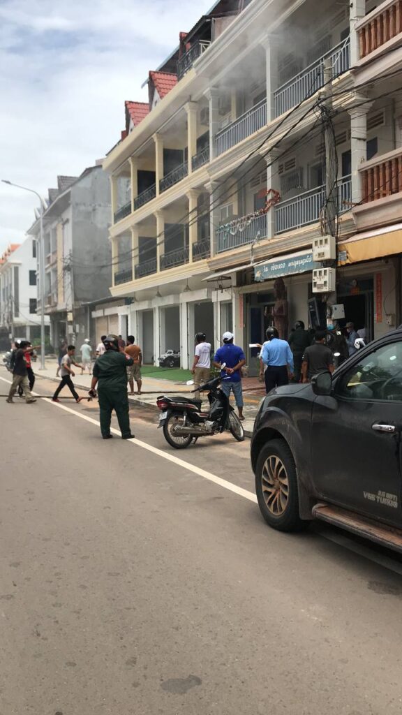 គ្រានោះគាត់បានរាយការណ៍មកមេវេនរួចក៏នាំគ្នាវ៉ៃសោរចូលទៅក្នុង ពេលវ៉ៃសោររបើកហើយក៏យកបំពង់អគ្គិភ័យអ្នកជិតខាងនិងបំពង់អគ្គិភ័យដែលលោកស្នងការបំពាក់នឹងម៉ូតូរបស់ក្រុមអន្តរាគមន៍នគរបាលចរាចរណ៍ ទៅបាញ់ពន្លត់នៅក្នុងផ្ទះ ស្របគ្នាពេលនោះក៏មានរថយន្តអគ្គិភ័យរបស់ស្នងការនគរបាលខេត្តសៀមរាបទៅដល់ផងដែរ។លោកបន្ថែមថា ដោយមានកិច្ចសហការគ្នាល្អ អគ្គិភយ័ដែលឆាបឆេះនោះបានរលត់ទាំងស្រុងទៅវិញនៅម៉ោង ១២និង២៥នាទីថ្ងៃខែដដែល។