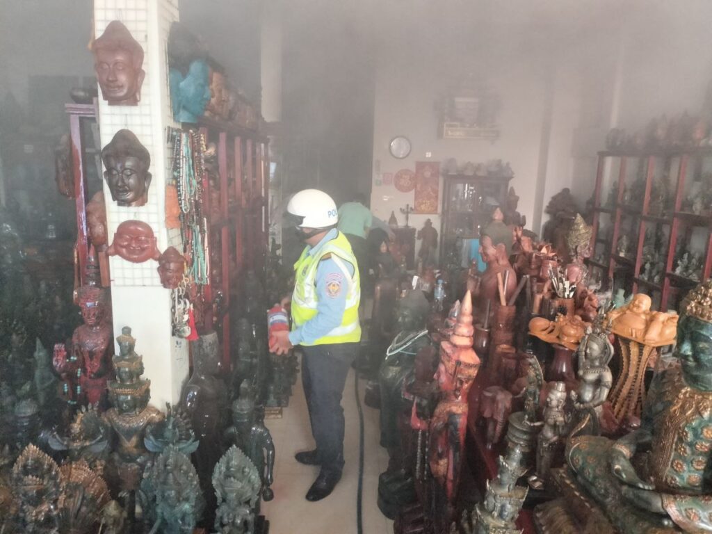 ខេត្តសៀមរាប៖សេចក្តីរាយការណ៍បានឲ្យដឹងថា ម្ចាស់ហាងលក់វត្ថុអនុស្សាវរីយ៍ យីហោ តែ ម៉េងហេង បានអុជធូបសែន រួចចេញទៅក្រៅផ្ទះរួចក៏ឆាបឆេះភ្លើងធូបជាមួយធុងដាក់អាកុល បណ្ដាលឲ្យឆេះហាង បង្កភ្ញាក់ផ្អើល សំណាងល្អបាននគរបាលចរាចរណ៍ចិត្តធម៌២នាក់ប្រចាំការក្បែរកន្លែងកើតហេតុនោះ ជួយពន្លត់ទាន់។ហេតុការណ៍នេះវេលាម៉ោង ១១និង ៣០នាទីថ្ងៃទី១២ខែសីហាឆ្នាំ២០២២ មានករណីអគ្គិភ័យ ក្នុងក្រុមទី៦ ភូមិសាលាកន្សែង សង្កាត់ស្វាយដង្គំ ក្រុង សៀមរាប ខេត្តសៀមរាប។