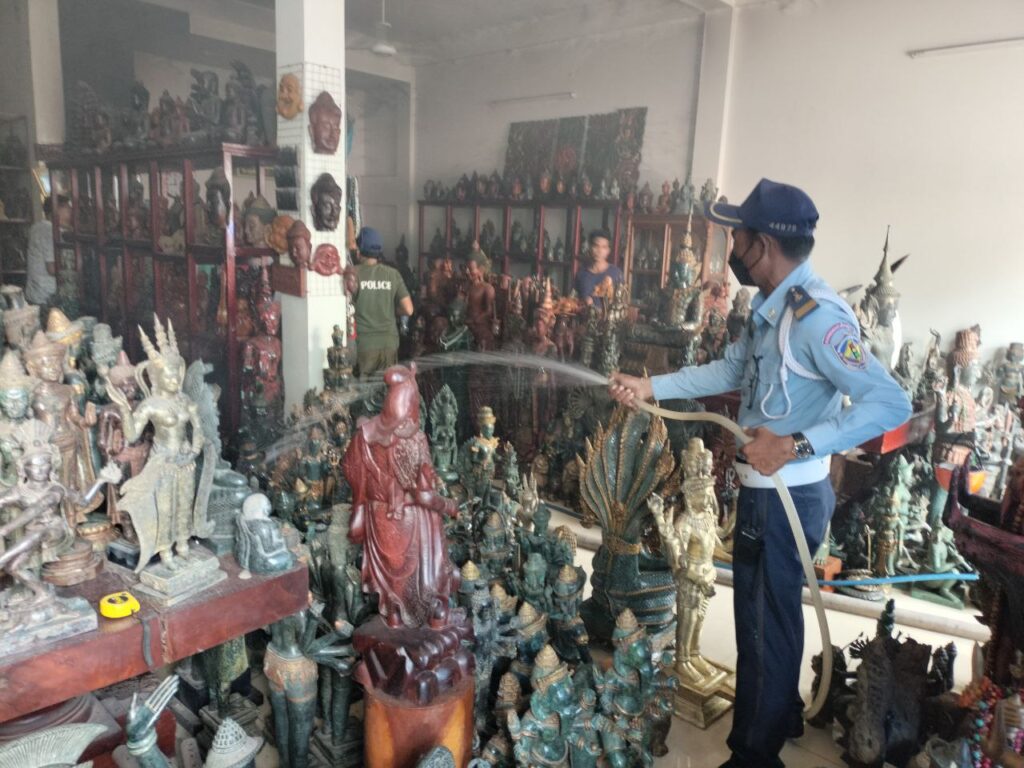 លោកឧត្តមសេនីយ៍ត្រីភឹង ចិន្តារ៉េត ស្នងការរងស្តីទី នៃស្នងការដ្ឋាននគរបាលខេត្តសៀមរាប បានឲ្យដឹងថា ដោយទទួលបានសេចក្តីរាយការណ៍ករណីគ្រោះអគ្គិភ័យ បានកើតឡើង កម្លាំងសមត្ថកិច្ចចម្រុះបានចុះទៅជួយពពន្លត់ ក្នុងហាងលក់វត្ថុអនុស្សាវរីយ៍ យីហោ តែ ម៉េងហេង។លោកបញ្ជាក់ថា ក្នុងហេតុការណ៍ឆេះនេះមានមន្ត្រីចរាចរណ៍ចំនួននាក់ដែលប្រចាំការនៅ ស្តុបសារៈមន្ទីរដែលមានឆន្ទះនិងស្មារតីគោរពស្រឡាញ់ ការពារទ្រព្យសម្បត្តិប្រជាពលរដ្ឋ បានមើលឃើញផ្សែងខ្មៅ ពួកគាត់ មិនប្រកាន់តួនាទីនិងភារកិច្ចបាននាំគ្នារត់ទៅកន្លែងកើតហេតុពិនិត្យមើលឃើញថាមានភ្លើងឆេះក្នុងផ្ទះល្វែង១ខ្នងដែលម្ចាស់ផ្ទះមិននៅព្រោះឃើញទ្វារចាក់សោរខាងក្រៅ។