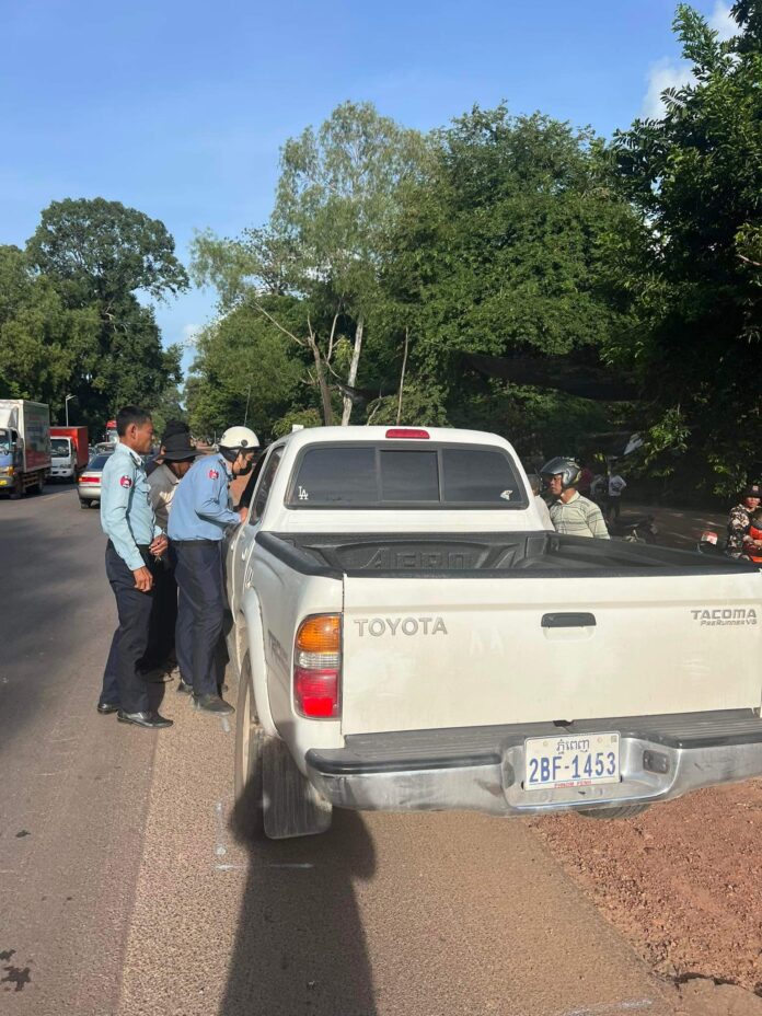 សមត្ថកិច្ចបានឲ្យដឹងថា រថយន្តម៉ាក TOYOTA TACOMA ពណ ទឹកប្រាក់ ផ្លាកលេខ ភ្នំពេញ 2BF 1453 បើកបរដោយជនជាតិអ៊ីតាលី ឈ្មោះ LEGNANI FRANCO GIUSEPPE ភេទប្រុស អាយុ៦៤ឆ្នាំ នៅភូមិកំពង់រទេះ ឃុំកំពង់រទេះ ស្រុកស្ទឹងសែន ខេត្តកំពង់ធំ បើកបរមានទិសដៅពីលិច ទៅកើត បានបុកជាមួយម៉ូតូមួយគ្រឿងម៉ាក HONDA DREAM សេរី ឆ្នាំ២០១៨ ពណ៌ ខ្មៅ ស្លាកលេខសៀមរាប ភ្នំពេញ 1HB 5770 ដែលបើកបរមានទិសដៅពីកើត ទៅលិច បើកបរដោយឈ្មោះ ខាត់ វាសនា ភេទប្រុស អាយុ៣៦ ឆ្នាំ នៅភូមិបន្ទាយចាស់ សង្កាត់ ស្លក្រាម ក្រុងសៀមរាប ខេត្តសៀមរាប បាន(ស្លាប់)នៅមន្ទីរពេទ្យ។