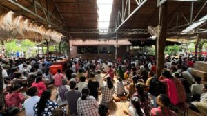សៀមរាប៖ពលរដ្ឋប្រមាណជា១,៥ម៉ឺននាក់ដែលលោក ខឹម វាសនា បានគៀងគមកពីបណ្តាខេត្តនានាឲ្យមកស្នាក់នៅចម្ការរបស់លោកស្ថិតនៅភូមិថ្មជល់ឃុំត្បែង ស្រុកបន្ទាយស្រី ខេត្តសៀមរាប ដោយគិតថាអាចគេចផុតពីបាតុភូតគ្រោះធម្មជាតិនិងស្តាប់ធម៌។តែអាជ្ញាធរកំពុងតាមដានយ៉ាងយកចិត្តទុកដាក់ផងដែរ។