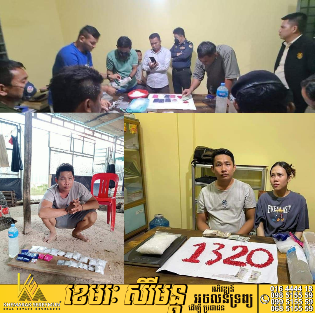 លទ្ធផលឃាត់ខ្លួនបានមនុស្ស ០៤នាក់ និងដករហូតវត្ថុតាងរួមមាន៖- ម្សៅក្រាមពណ៏សថ្លាចំនួន ១៨ កញ្ចប់ (ធំ១១កញ្ជប់ តូច០៧ ) ទម្ងន់ = ៦១៧.២៧ក្រាម ( ថ្លឹងទាំងសំបក់ថង់ )- ថ្នាំគ្រាប់ប្រភេទ WY ពណ៍ឈាមជ្រូកចំនួន ០៨ កញ្ចប់ (ធំ០៧កញ្ជប់) ស្មើនិង ១៣២០គ្រាប់ ទម្ងន់= ១៤៥.៩៣ក្រាម ( ថ្លឹងទាំងសំបក់ថង់ ) ។- ប្រាក់ដុល្លារចំនួន ២៤០០$ ( ពីពាន់បួនរយដុល្លាអាមេរិច ) ប្រាក់រៀល ២,៦៥៥,០០០រៀល ( ពីរលានហុកសិបប្រាំមុឺនរៀល )។- ដបទឹកសុទ្ធធំចំនួន០១( មានផ្ទុកដោយទឹកសារធាតុញៀន )- ទូរសព្ទ័ចំនួន ០៣គ្រឿង (ម៉ាកViVO, iPhne, iphone11ProMaX)និងម៉ូតូចំនួន០២គ្រឿង ម៉ាកហុងដា C125ពណ៌ក្រហម ស្លាកលេខតាកែវ 1F2238និង ម៉ាក់BeaTពណ៍ ស ខៀវ ស្លាកលេខតាកែវ 1Y2809 ព្រមទាំងសម្ភារៈវេចខ្ចប់ថ្នាំញៀនមួយចំនួន។