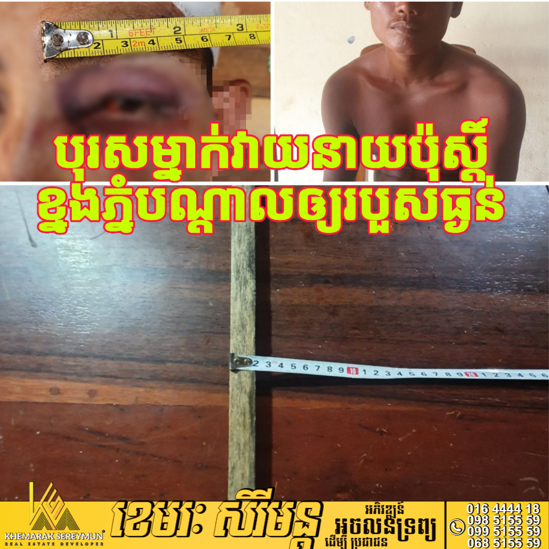 សមត្ថកិច្ចបានបន្តឲ្យដឹងថា ឃាត់ខ្លួនជនសង្ស័យម្នាក់ គឺ ឈ្មោះ ធឹម ឧត្តម ភេទប្រុស អាយុ៣២ឆ្នាំ សញ្ជាតិខ្មែរ មុខរបរ មិនពិតប្រាកដ មានស្រុកកំណើត-ទីលំនៅបច្ចប្បន្នភូមិត្បែង ឃុំក្រាំងធ្នង់ ស្រុកបាទី ខេត្តតាកែវ។សមត្ថកិច្ចបន្តថា ជនរងគ្រោះ ឈ្មោះ ឡុង ង៉ិក ភេទប្រុសអាយុ៥៤ឆ្នាំ សញ្ជាតិខ្មែរ មុខរបរនគរបាល(នាយប៉ុស្តិ៍) មានទីលំនៅបច្ចុប្បន្នភូមិជប់លើ ឃុំស្វាយលើ ស្រុកស្វាយលើ ខេត្តសៀមរាប បានមកដាក់ពាក្យបណ្តឹងនៅអធិការដ្ឋានននគរបាលស្រុកស្វាយលើ និងបានឲ្យដឹងថា នៅមុនពេលកើតហេតុខ្លួនកំពុងដាំបាយនៅផ្ទះរបស់ខ្លួន ដែលស្ថិតនៅភូមិព្រះអង្គធំ ឃុំខ្នងភ្នំ ស្រុកស្វាយលើ ខេត្តសៀមរាប លុះដល់ពេលកើតហេតុ ខ្លូនបានប្រទះឃើញបុរសម្នាក់មិនធ្លាប់ស្គាល់កំពុងស្រាយអង្រឹងនៅនឹងតូបរបស់ខ្លួនដែលស្ថិតនៅមុខផ្ទះរបស់ខ្លួន ស្របពេលនោះខ្លួនក៏បានដើរទៅសួរគេថា ស្រាយធ្វើអី មិនបាច់ស្រាយទេ ដេកនៅទីនេះក៏បាន ស្រាប់តែពេលនោះជនសង្ស័យរូបនោះបានប្រើហិង្សាមកលើខ្លួន ដោយក្តាប់ដៃហើយវាយត្រូវភ្នែកខ្លួនខាងឆ្វេងចំនួន០១ដៃ បណ្តាលឲ្យខ្លួនងងឹតមុខឈឹង ហើយគេបានបន្តយកដំបងឈើមួយដើម មកវាយត្រូវក្បាលនិងដងខ្លួនរបស់ខ្លួន ប្រហែល១៥ដំបងទៀត បណ្តាលឲ្យបាក់ដំបងនោះ ហើយគេយកដំបងមកចាក់ត្រូវពោះរបស់ខ្លួនចំនួន០២ដងបណ្តាលឲ្យខ្លួនដួល ពេលឃើញខ្លួនដួលជនសង្ស័យរូបនោះ បានស្ទុះមកច្របាច់កខ្លួនទៀត។ចំណែកខ្លួនបានព្យាយាមរើបំរ៉ះ រហូតអាចងើបនិងរត់ទៅស្រែកហៅអោយគេជួយ សំណាងមានអ្នកនៅម្តុំនោះបានដើរមកមើល និងបានឃើញខ្លួនមានរបួសក្បាល ហូឈាម ក៏នាំគ្នាដេញចាប់ជនសង្ស័យរូបនោះបាន និងប្រគល់ជូនសមត្ថកិច្ច ទើបបានដឹងថាជនសង្ស័យឈ្មោះ ធឹម ឧត្តម ភេទប្រុស អាយុ៣២ឆ្នាំ សញ្ជាតិខ្មែរ មុខរបរ មិនពិតប្រាកដ រស់នៅភូមិត្បែង ឃុំក្រាំងធ្នង់ ស្រុកបាទី ខេត្តតាកែវ ។