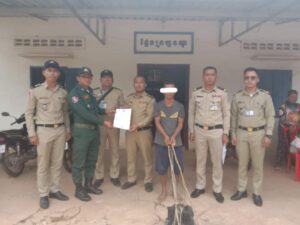 ខេត្តសៀមរាប៖លោកវរសេនីយ៍ឯកលឹម សម្បត្តិ អធិការនគរបាលស្រុកប្រាសាទបាគង បានឲ្យដឹងនៅថ្ងៃទី១៥នេះថា ដោយអនុវត្តតាមការណែនាំរបស់ លោកសូរ ប្លាតុង ប្រធានគណៈបញ្ជាការឯកភាពរដ្ឋបាលស្រុកប្រាសាទបាគង និងបន្ទាប់ពីទទួលបានសេចក្តីរាយការណ៍ពីបងប្អូនប្រជាពលរដ្ឋ នៅវេលាម៉ោង១:៣០នាទីឆ្លងចូលព្រឹកថ្ងៃទី១៤ ខែតុលា ឆ្នាំ២០២២ កំលាំងប៉ុស្តិ៍នគរបាលរដ្ឋបាលកណ្ដែក នៃអធិការដ្ឋាននគរបាលស្រុកប្រាសាទបាគង និងកំលាំងប្រជាការពារ បានធ្វើការបង្ក្រាប ករណីនេសាទខុសច្បាប់(ឆក់ត្រី) ជាក់ស្តែង នៅចំណុចត្រពាំងទួលក្ងោក ភូមិច្រេស ឃុំកណ្ដែក ស្រុកប្រាសាទបាគង ខេត្តសៀមរាប ឃាត់ខ្លួន បាន ជនសង្ស័យចំនួន០១នាក់ ឈ្មោះ ខាំ សីហា ភេទប្រុស អាយុ៣២ឆ្នាំរស់នៅភូមិឃុំខាងលេី ខណៈដែលកំពុងធ្វេីសកម្មភាព ឆក់ត្រីជាក់ស្តែង នាំយកមកធ្វើការសាកសួនាំ និង ដកហូតវត្ថុតាងបានរួមមាន៖ដុំម៉ូទ័រឆក់ត្រី ចំនួន០១គ្រឿង ដងឆក់ចំនួន០២ ដើម-អាគុយម៉ាក ភីណូសូ(pinoco)៤០អំពែរចំនួន០១គ្រឿង។