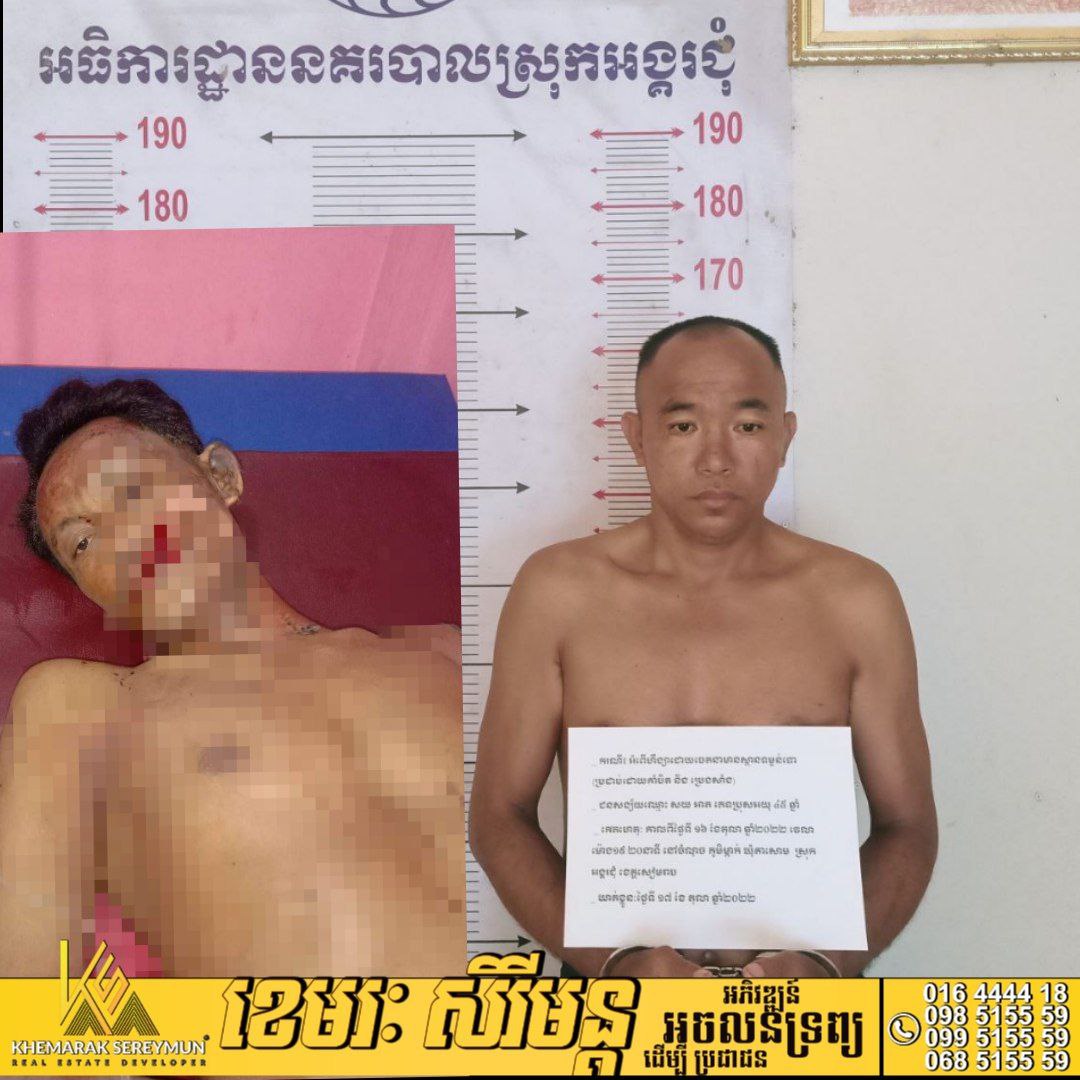 លោកវរសេនីយ៍ ទោ សុខ ម៉េងអ៊ាង នាយការិយាល័យព្រហ្មទណ្ឌកម្រិតធ្ងន់នៃស្នងការដ្ឋាននគរបាលខេត្តសៀមរាប បានឲ្យដឹងថា ដោយអនុវត្តតាមបទបញ្ជា របស់លោក ឧត្តមសេនីយ៍ត្រី តេង ច័ន្ទណាត ស្នងការនគរបាលខេត្ត លោកឧត្តមសេនីយ៍ត្រី ភឹង ចិន្តារ៉េត ស្នងការរងទទួលផែននគរបាលព្រហ្មទណ្ឌ លោកវរសេនីយ៍ឯក ណុប សារ៉ាក់ ស្នងការរងទទួលដឹកនាំការិយាល័យ នគរបាលព្រហ្មទណ្ឌកម្រិតធ្ងន់ និងដោយមានការសម្របសម្រួលពីឯកឧត្តម មាស ច័ន្ទពិសិដ្ឋ ព្រះរាជអាជ្ញាអមសាលាដំបូងខេត្តសៀមរាប ទើបលោកដឹកនាំកម្លាំងនគរបាលជំនាញខេត្ត សហការណ៍ជាមួយកម្លាំងអធិការនគរបាលស្រុកអង្គរជុំ ចុះទៅដល់កន្លែងកើតហេតុឃាត់ខ្លួនជនសង្ស័យម្នាក់ឈ្មោះ សយ អាត ភេទប្រុស អាយុ ៤៥ ឆ្នាំ មុខរបរកសិករ បច្ចុប្បន្នរស់នៅភូមិម្កាក់ ឃុំតាសោម ស្រុកអង្គរជុំ ខេត្តសៀមរាប ពាក់ព័ន្ធនិងករណី: ហិង្សាដោយចេតនាមានស្ថានទម្ងន់ទោស (កាប់នឹងកាំបិតបុ័ងតោ និងដុតដោយសាំង ) កាលពីវេលាម៉ោង ១៩ និង ២០នាទី ថ្ងៃទី ១៦ ខែតុលា ឆ្នាំ២០២២ ត្រង់ចំណុចភូមិម្កាក់ ឃុំតា សោម ស្រុកអង្គរជុំ ដែលមានជនរងគ្រោះ ឈ្មោះ ឈឿ បូណា ភេទ ប្រុស អាយុ ៤២ឆ្នាំ មុខរបរ កសិករ បច្ចុប្បន្នរស់នៅភូមិកើតហេតុខាងលើ។លោកបន្ថែមថា ករណីនេះផ្តើមចេញពីមានទំនាស់ពាក្យសម្តីនិងគ្នាជាមួយជនសង្ស័យ ភ្លាមនោះជនសង្ស័យ បានយកសាំងដុតកញ្ចុះ និងដុតទៅលើជនរងគ្រោះ បណ្តាលឲ្យឆេះអាវ បន្ទាប់មកជនសង្ស័យបានយកកាំបិតពីក្នុងផ្ទះ កាប់មកលើជនរងគ្រោះ បណ្តាលឲ្យរបួស លើផ្ទៃមុខ ០១កាំបិត និង ស្មាខាងឆ្វេង ០១កាំបិត ក្រោយពេលធ្វើសកម្មភាពហើយ ជនសង្ស័យបានរត់ចូលក្នុងផ្ទះ ហើយចាក់សោរផ្ទះសង្ងំក្នុងផ្ទះ លុះព្រឹកឡើង នៅពេលកម្លាំងយើងចុះទៅ និងហៅជនសង្ស័យចេញពីក្នុងផ្ទះ តែពេលនោះជនសង្ស័យ ព្យាយាមយកសាំងគំរាមរកដុតខ្លួនតែត្រូវកម្លាំងសមត្ថកិច្ចយើង ឃាត់ខ្លួនយកមកធ្វើការសាកសួរ តែម្តង។លោកបញ្ជាក់ថា នៅចំពោះមុខសមត្ថកិច្ច ជនសង្ស័យបានឆ្លើយសារភាពថា ដោយសារខឹងនិងជនរងគ្រោះ តែងតែមានទំនាស់ជាមួយរូបខ្លួនទើប នៅថ្ងៃកើតហេតុ រូបខ្លួនបានយកសាំងចាក់ដុតទៅលើជនរងគ្រោះ ហើយថែមទាំងយកកាំបិត កាប់ទៅលើជនរងគ្រោះពិតប្រាកដមែន។វត្ថុតាងដកហូតបាន៖កាំបិត០១ ពូថៅ ០១ និងសាំង ០៦ដប ។