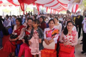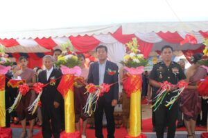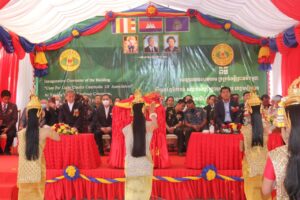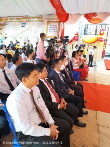ពិធីនេះត្រូវបានកាត់ខ្សែបូរដាក់ឱ្យប្រើប្រាស់ជាផ្លូវការឋក្រោមអធិបតីភាព លោកអ៊ឹង គឹមលាង អភិបាលរងខេត្តតំណាងឯកឧត្តម ទៀ សីហា អភិបាលនៃគណៈអភិបាលខេត្តសៀមរាប ព្រមទាំងវត្តមាន ព្រឹទ្ឋាចារ្យ និងក្រុមប្រតិភូមកពីសមាគមសែងថាំសងឡានៃប្រទេសថៃ និង តំណាងសមាគមទ្រទ្រង់ពន្លឺព្រះធម៌ពិភពលោក មកពីប្រទេសមួយចំនួនក្នុងតំបន់អាស៊ាន មន្ត្រីនៃអង្គភាពមន្ទីរពាក់ព័ន្ឋក្នុងខេត្ត កងកម្លាំងប្រដាប់អាវុធ លោកគ្រូអ្នកគ្រូ សិស្សានុសិស្ស ជាច្រើនផងដែរ។