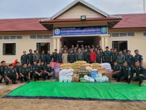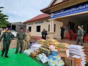 បន្ទាប់ពីលោកឧត្តមសេនីយ៍ត្រីបានសំណេះសំណាលជាមួយកងកម្លាំងវរសេនាតូចការពារព្រំដែន៦២៣រួចមក និងបាននាំយកគ្រឿងឧបភោគ បរិភោគរួមមាន: អង្ករចំនួន៤០បេ, ទឹកសុទ្ធ២០កេះ, ស្រាបៀ១០កេះ, មី២០កេះ, ត្រីខ១កេះធំនិង១៣យួរ, ខ្ទឹមស១បេ, អំបិល១៥០គីឡូក្រាម, ទឹកត្រី១កេះ, ទឹកស៉ីអីវ១កេះ, ប៊ីចេង២៣គីឡូក្រាម, ស្កស១បេ, ប្រេងឆា១កេះ, សាប៊ូ១កេះ, និងថវិកា១.០០០.០០០.រៀល បានប្រគល់ដល់កម្លាំងវរសេនាតូចការពារព្រំដែនគោកលេខ៦២៣នាឱកាសនោះផងដែរ៕ដោយ៖ វុទ្ធឦសាន