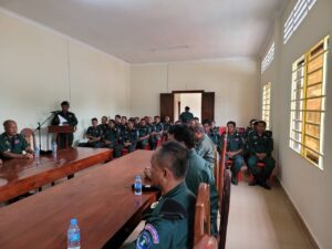 លោកឧត្តមសេនីយ៍ត្រី បានសំណេះសំណាលនិងសួរសុខទុក្ខដល់កងកម្លាំងវរសេនាតូចការពារព្រំដែនគោកលេខ៦២៣ ធ្វើយ៉ាងណាចាត់កម្លាំងចុះដើរល្បាតព្រំដែនជាប្រចាំ ហើយនិងមិនឲ្យមានបទល្មើសផ្សេងៗឆ្លងដែនដោយខុសច្បាប់ឡើយ។