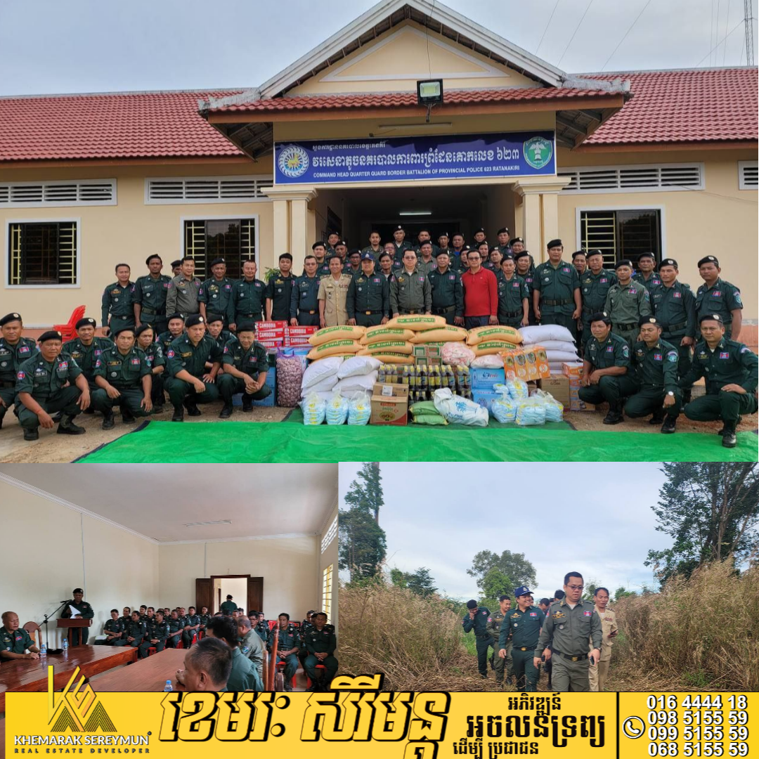 ខេត្តរតនគិរី៖លោកឧត្តមសេនីយ៍ត្រី អ៊ុង សុភាព ស្នងការនគរបាលខេត្តរតនគិរី នារសៀលថ្ងៃទី១៧ ខែធ្នូ ឆ្នាំ២០២២ បានចុះសួរសុខទុក្ខ កម្លាំងវរសេនាតូចនគរបាលការពារព្រំដែនគោកលេខ៦២៣ ហើយបានពិនិត្យលើការរស់នៅប្រចាំថ្ងៃ ដល់កងកម្លាំងនៅតាមខ្សែបន្ទាត់ព្រំដែន និងពិនិត្យទីតាំងស្នាក់នៅកន្លែងធ្វើការ។
