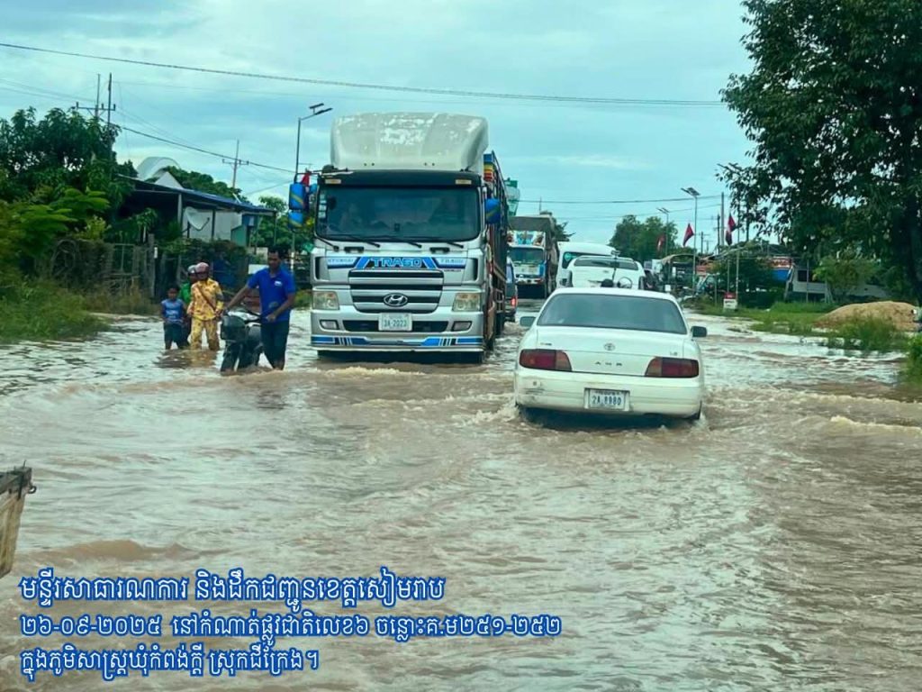 ខេត្តសៀមរាប៖នាថ្ងៃទី២៧ ខែកញ្ញា ឆ្នាំ២០២៥ ឯកឧត្ដម ថោ សេដ្ឋា រដ្ឋមន្ត្រីក្រសួងធនធានទឹក និងឧតុនិយម អមដំណើរដោយ ឯកឧត្ដម ប្រាក់ សោភ័ណ អភិបាលខេត្តសៀមរាប បានដឹកនាំក្រុមការងារចម្រុះ ចុះពិនិត្យស្ថានភាពទឹកជំនន់នៅក្នុងភូមិសាស្ត្រ ស្រុកជីក្រែង ខេត្តសៀមរាប។ដំណើរចុះពិនិត្យនេះ ធ្វើឡើងនៅតំបន់ ប្រឡាយខ្នាត ស្ថិតក្នុងភូមិកំពង់ក្ដី១ និងនៅ ស្ពានកំពង់ក្ដី ភូមិកំពង់ក្ដី២ ក្នុងឃុំកំពង់ក្ដី ស្រុកជីក្រែង ដើម្បីវាយតម្លៃស្ថានការណ៍ និងរកវិធានការ បញ្ចៀសទឹក កុំឱ្យបន្តជន់លិចហេដ្ឋារចនាសម្ព័ន្ធ វត្តអារាម សាលារៀន និងផ្ទះសម្បែងរបស់បងប្អូនប្រជាពលរដ្ឋ។