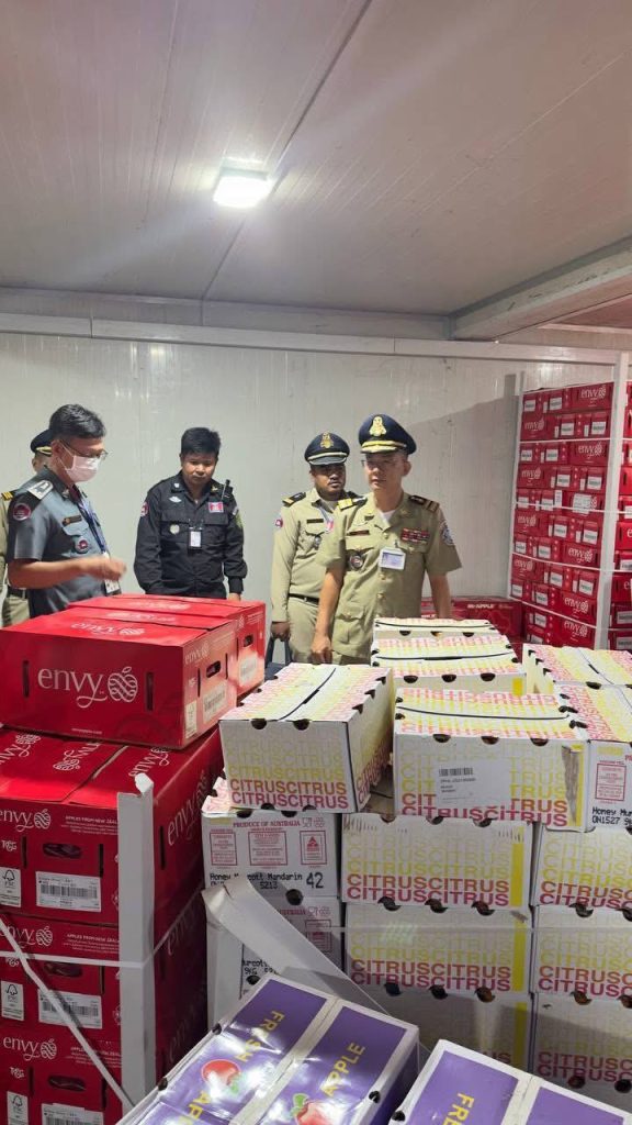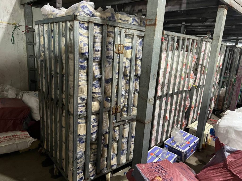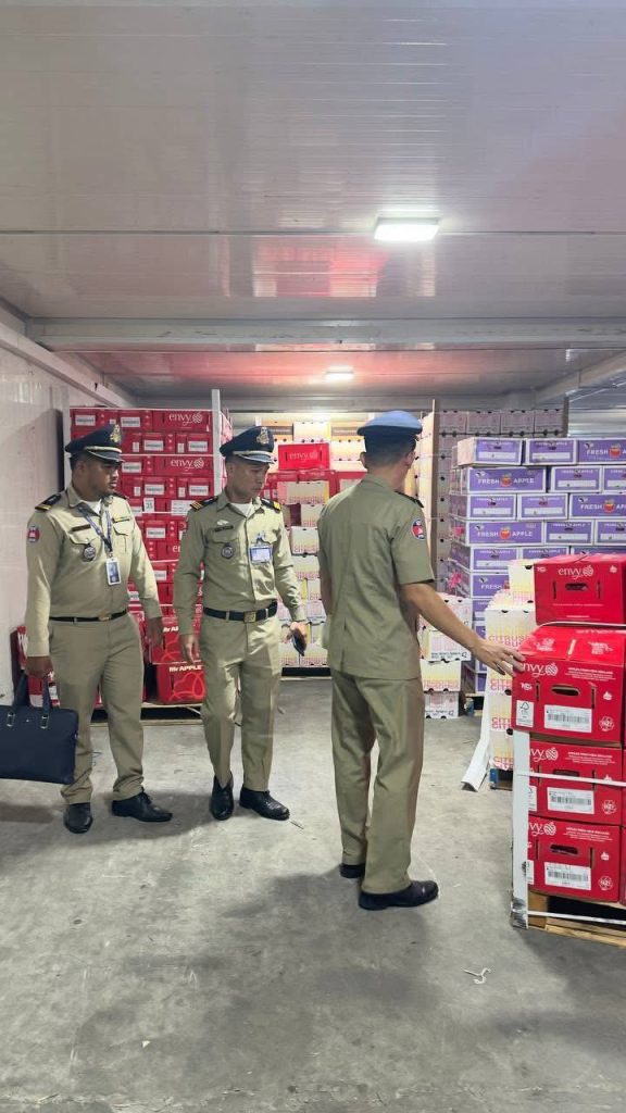 ភ្នំពេញ ៖នៅរសៀលថ្ងៃទី០៤ ខែតុលា ឆ្នាំ២០២៥ កម្លាំងសមត្ថកិច្ចចម្រុះ ចុះឡោមព័ន្ធឃ្លាំងស្តុកទំនិញមួយកន្លែង នៅចំណុចឃ្លាំងយីហោ «ខេ.យូ.អេស ខូអិលធីឌី» តាមបណ្តោយផ្លូវលេខ៣៨ សង្កាត់ស្ទឹងមានជ័យទី១ ខណ្ឌមានជ័យ រាជធានីភ្នំពេញ ដើម្បីត្រួតពិនិត្យ និងឆែកឆេរ ដោយរកឃើញទំនិញចំនួន៧មុខ មានទម្ងន់ប្រមាណជាង ៧៦តោន មិនទាន់បានបង់ពន្ធត្រឹមត្រូវ ថែមទាំងជាផលិតផលប្រទេសថៃ ផងដែរ។