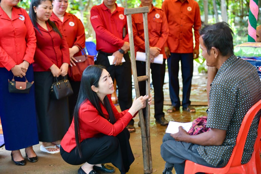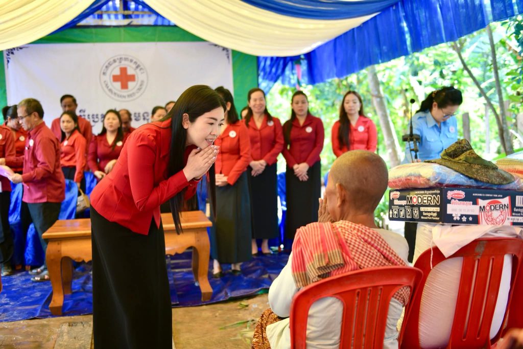 ក្នុងឱកាសនោះ លោកជំទាវ ទុយ ជិ ប្រាក់សោភ័ណ អនុប្រធានគណៈកម្មាធិការសាខា បាននាំនូវប្រសាសន៍ផ្ដាំផ្ញើសួរសុខទុក្ខដោយក្ដីនឹករឭកដ៏ខ្ពង់ខ្ពស់ពី សម្ដេចកិត្តិព្រឹទ្ធបណ្ឌិត ប៊ុន រ៉ានី ហ៊ុនសែន ប្រធានកាកបាទក្រហមកម្ពុជា ក៏ដូចជាឯកឧត្តម ប្រាក់ សោភ័ណ ប្រធានគណៈកម្មាធិការសាខា ដែលតែងតែគិតគូរចំពោះសុខទុក្ខរបស់បងប្អូនប្រជាពលរដ្ឋគ្រប់រូប ប្រកបដោយភាពកក់ក្ដៅ ដោយមិនប្រកាន់វណ្ណៈ ជំនឿសាសនា ឬនិន្នាការនយោបាយណាមួយ ស្របតាមទិសស្លោកថា “កាកបាទក្រហមកម្ពុជាមានគ្រប់ទីកន្លែងសម្រាប់គ្រប់ៗគ្នា-មិនទុកនរណាម្នាក់ចោល” និង “ទីណាមានទុក្ខលំបាក ទីនោះមានកាកបាទក្រហមកម្ពុជា”។