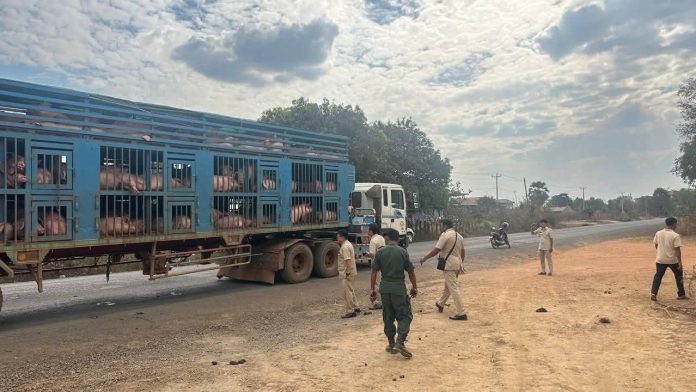 ខេត្តព្រះវិហារ៖លោកហោ ប៊ុនហួរ អភិបាលស្រុករវៀង បានឲ្យដឹងថា កាលពីថ្ងៃទី៤ ខែកុម្ភៈ ឆ្នាំ២០២៦ ក្រុមអន្តរាគមន៍បង្ក្រាបបទល្មើសចលនាសត្វ និងផលិតផលសត្វនៃអគ្គនាយកដ្ឋានសុខភាពសត្វ និងផលិតកម្មសត្វ បានសហការជាមួយមន្ទីរកសិកម្ម រុក្ខាប្រមាញ់ និងនេសាទខេត្តព្រះវិហារ និងកម្លាំងអធិការដ្ឋានស្រុករវៀង បានចុះប្រតិបត្តិការឃាត់រថយន្តមួយគ្រឿងដឹកជ្រូករស់ចំនួន ១៦០ក្បាលពីប្រទេសឡាវ នាំចូលមកកម្ពុជាដោយគ្មានច្បាប់។ លើផ្លូវលេខ៩៥ ត្រង់ចំណុចភូមិថ្នល់កែង ឃុំរុងរឿង ស្រុករវៀង ខេត្តព្រះវិហារ។