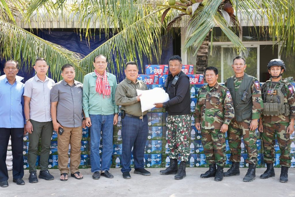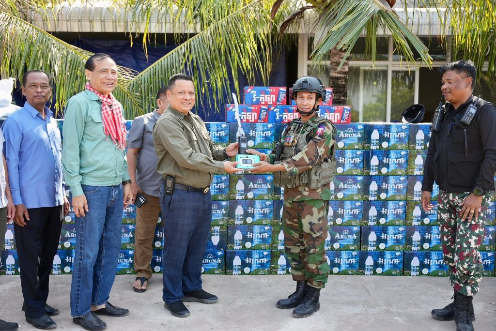 សៀមរាប ៖ នៅព្រឹកថ្ងៃសៅរ៍ ទី២១ ខែកុម្ភៈ ឆ្នាំ២០២៦នេះ លោកឧត្តមសេនីយ៍ទោ ហួត សុធី ស្នងការ នៃស្នងការដ្ឋាននគរបាលខេត្តសៀមរាប បានអញ្ជើញដឹកនាំសហការី នាំយកនូវគ្រឿងឧបភោគ បរិភោគ និងសម្ភារៈប្រើប្រាស់មួយចំនួនរួមមាន អង្ករ ៥០ការុង ទឹកបរិសុទ្ធចំនួន ៣០០កេស ភេសជ្ជៈ ០៥កេស ធុងទឹកចំនួន១០ ចំណុះ ២០០០លីត្រ ដុំសម្រាប់ប្រើប្រាស់អ៊ីនធឺណិតចំនួន០១ និងវិទ្យុទាក់ទងចំនួន០១ ប្រគល់ ជូន ដល់កងទ័ពជួរមុខទិសប្រាសាទព្រះវិហារ។