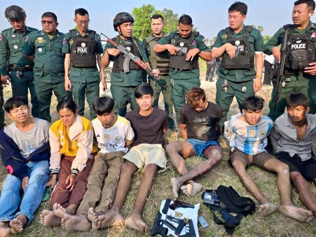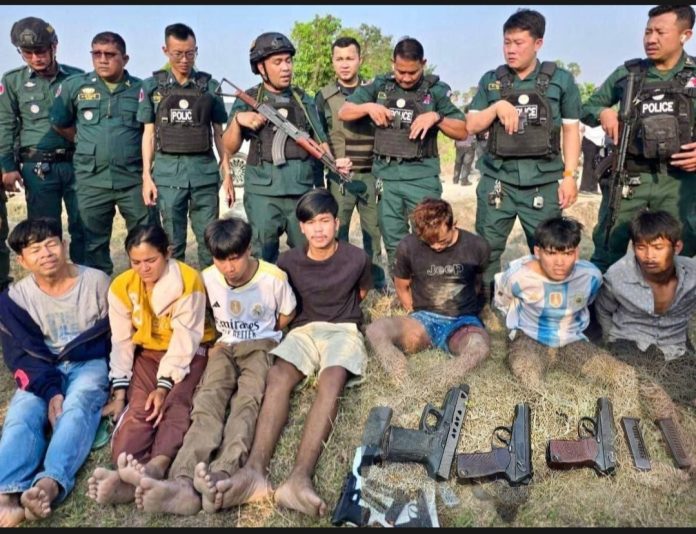 ខេត្តតាកែវ៖សេចក្តីរាយការណ៍បានឲ្យដឹងថា នៅរសៀលថ្ងៃទី០២ ខែមេសា ឆ្នាំ២០២៦កម្លាំងជំនាញ នៃមន្ទីរប្រឆាំងបទល្មើសគ្រឿងញៀន បង្ក្រាបក្រុមឧក្រិដ្ឋជន ជួញដូរគ្រឿងញៀន ប្រដាប់ដោយអាវុធ ស្ថិតនៅចំណុចភូមិពូនភ្នំ ឃុំត្រពាំងសាប ស្រុកបាទី ខេត្តតាកែវ ដោយចាប់ខ្លួនជនល្មើសសរុបចំនួន ០៧នាក់ ក្នុងនោះបានមេក្លោងធំម្នាក់ ដែលមានរហស្សនាម រាជ ។