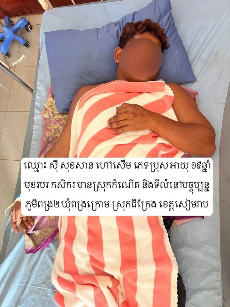 ៧- ឈ្មោះ ស៊ី សុសាន ហៅ សើម ភេទប្រុស អាយុ ១៩ ឆ្នាំ មុខរបរ កសិករ (គ្មានប្រវត្តិទោស) (រងរបួសធ្ងន់ កំពុងសម្រាកព្យាបាលនៅមន្ទីរពេទ្យ)
