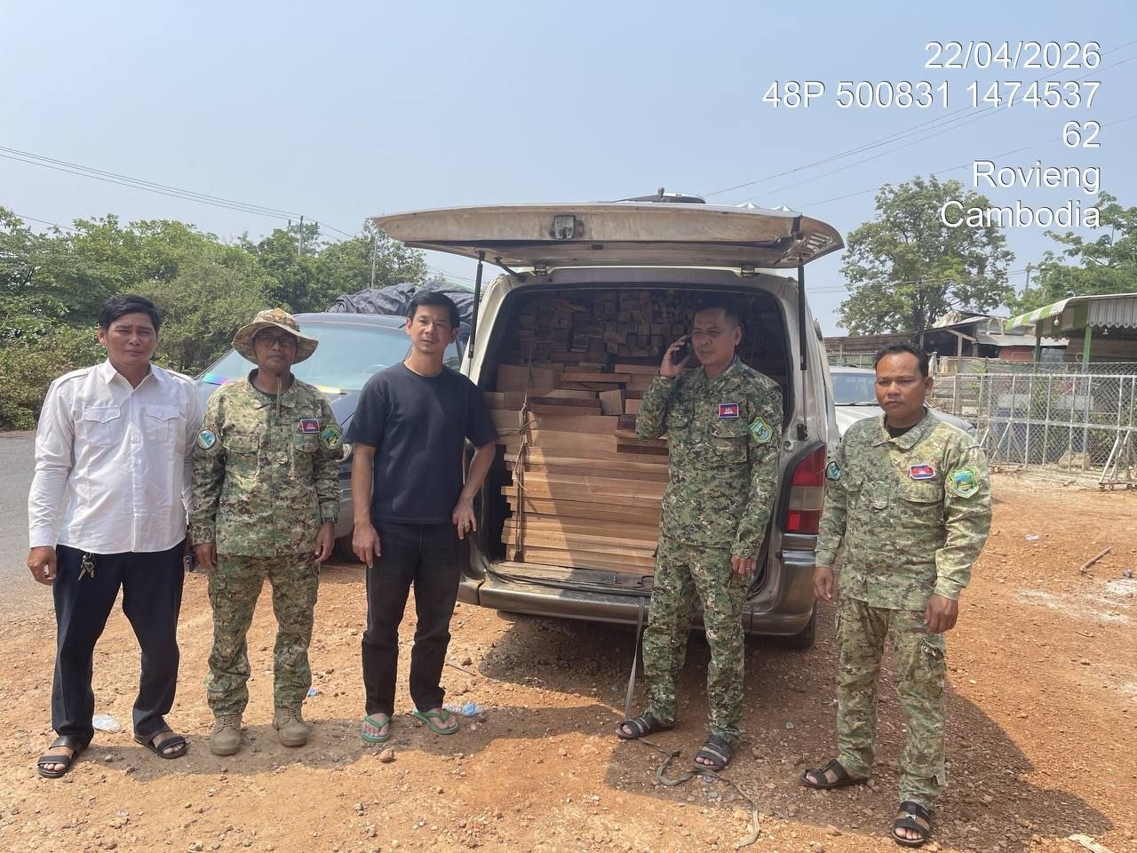 ខេត្តព្រះវិហារ៖កម្លាំងសមត្ថកិច្ចជំនាញនៃមន្ទីរបរិស្ថានខេត្តព្រះវិហារ សហការមួយកម្លាំងអាវុធហត្ថខេត្ត ធ្វើការបង្ក្រាបរថយន្តសាំយ៉ុងដឹកឈើពេញប្រៀបដោយខុសច្បាប់ បន្ទាប់ពីសេចក្តីរាយការណ៍ពីលោកតាន់ គឹមសួរ ។ហេតុការណ៍បង្ក្រាបនេះធ្វើឡើងនៅព្រឹកថ្ងៃទី២២ខែមេសាឆ្នាំ២០២៦ ចំណុចបង្គោលលេខ៧២ស្ថិតនៅត្រពាំងទន្ទឹម ឃុំរមទម ស្រុករវៀង ខេត្តព្រះវិហារ។